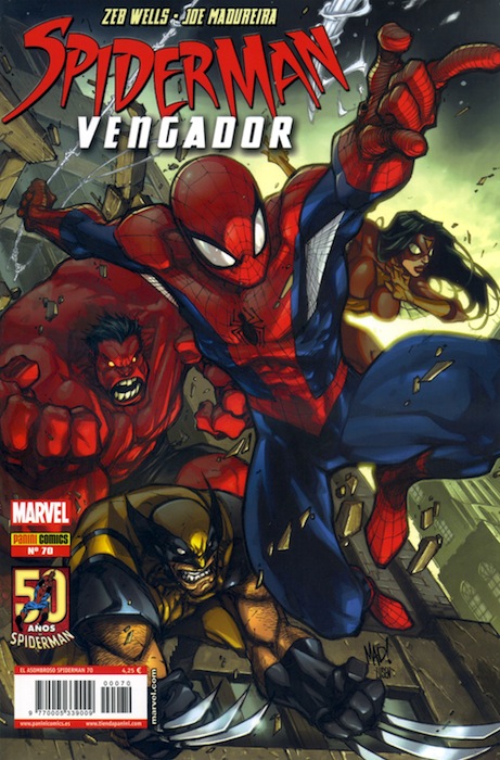 El estreno de la nueva serie de Spiderman no pudo ser más afortunado. Dentro del estilo desenfadado que se ha venido dando al Trepamuros durante los últimos años, y después de las reconducciones más dramáticas de su destino, Zeb Wells y Joe Madureira entienden perfectamente las necesidades de la divertida historia que plantean en Spiderman Vengador. Una en la que, como buen relato de Spiderman que se precie, tiene que haber sentido del humor y una amenaza real. Y nada mejor para ello que aprovechar algunos de los pilares del héroe de siempre y del más contemporáneo. Entre los primeros está, obviamente, Nueva York, y la amenaza se cierne sobre la ciudad. O, mejor dicho, bajo ella, con un magnífico uso de un personaje que lejos de los 4 Fantásticos no siempre ha funcionado bien, el Hombre Topo. Entre los segundos, la condición de Vengador de Spiderman y el espíritu del clásico Marvel Team-Up de los años 70, en este caso haciendo que el superhéroe arácnido trabaje codo con codo con el Hulk Rojo. Wells construye el guión con mucho acierto y Madureira se luce con toda la espectacularidad que le permite la serie. Y es que, ¿quién puede resistirse a una buena y divertida historia de Spiderman?