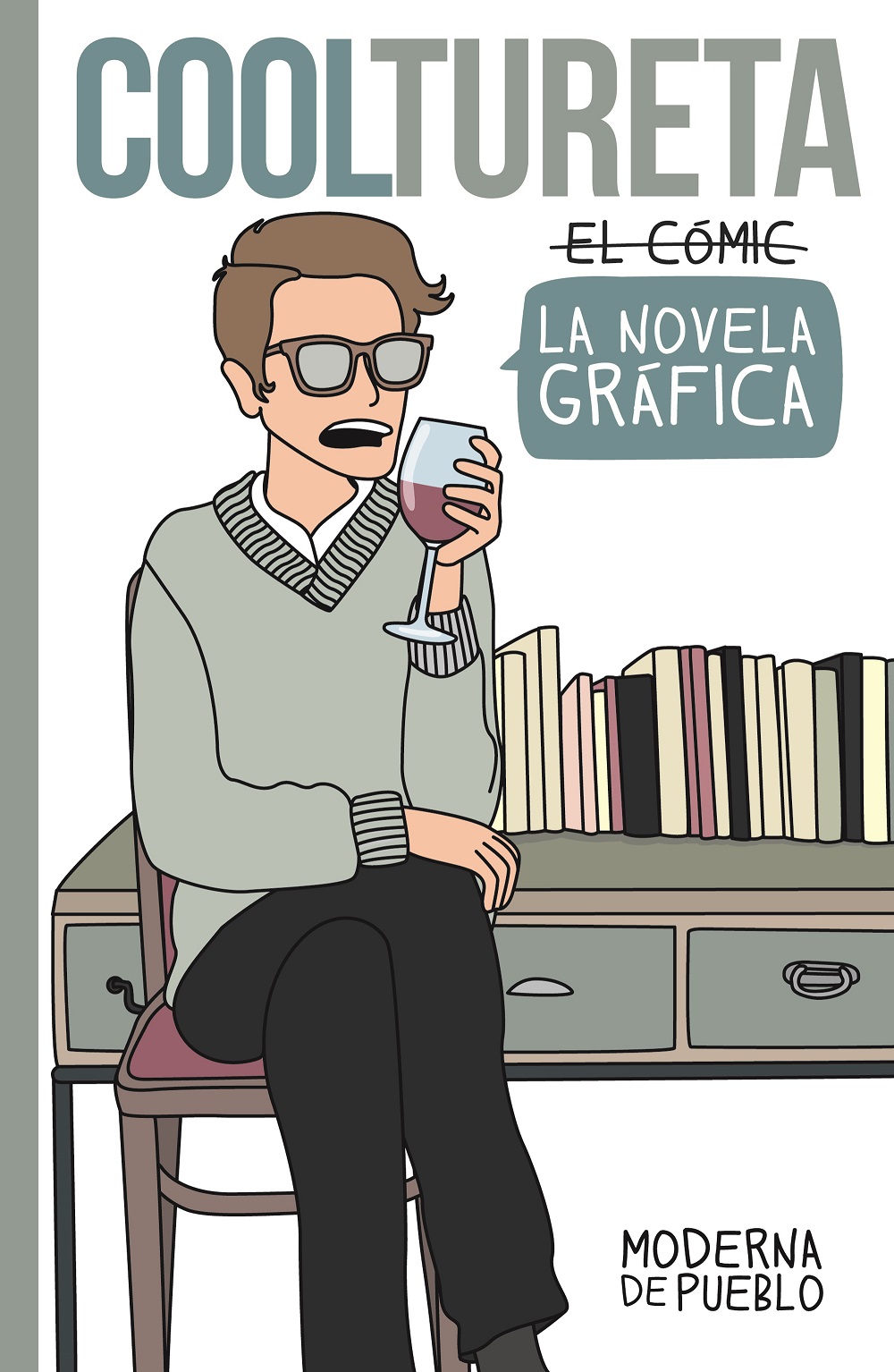 Moderna de Pueblo es una historieta que ha ido generando a una enorme velocidad una no menos impresionante legión de aficionados y lectores. Raquel Córcoles es quien está detrás de este tebeo, tanto artísticamente como en muchos aspectos de la personalidad de su protagonista, y ahora llega el momento de comprobar si la autora es capaz de hacer algo diferente gracias a Cooltureta. Hay dos aspectos en los que sí se ve ese necesario cambio. En primer lugar, porque no lo escribe sola, sino junto a Carlos Carrero, también pareja en la vida real. En segundo lugar, porque el personaje es un hombre y la historia no apela a emociones y sentimientos estrictamente femeninos, sino que opta por una caricatura social y cultural que afecta a un segmento de población diferente. Y es ¿quien no es en algún aspecto o conoce a alguien que lo sea en más de uno como este Cooltureta? Córcoles y Carrero definen a un personaje que sigue modas, que acepta un beneplácito social en base a dejar de ser uno mismo, que se engaña para encajar. Lo que es Cooltureta queda magníficamente ya definido en la portada. «El cómic» aparece tachado y en su lugar pone «La novela gráfica». Mucho más cool, no hay duda. Las modas mandan. Como en la brillante parodia de Cooltureta.