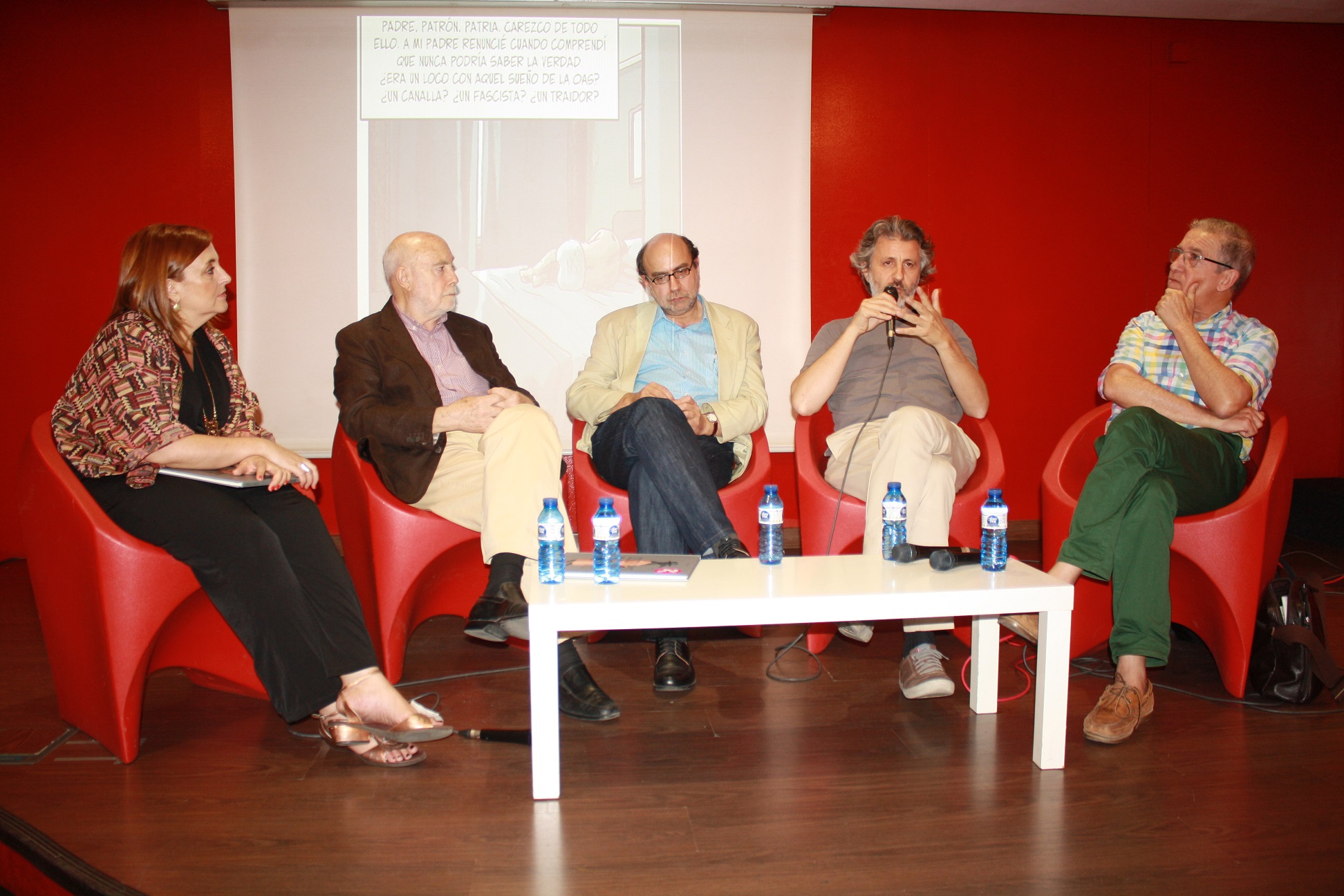 Antes de que tomaran la palabra los autores, hablaron tanto el editor como los dos invitados de honor. «Estoy entusiasmado por publicar un libro como éste», explicó Martínez, convencido de que será el primero de muchos que hablen de este tema porque «por fin se va a levantar la manta y se va a hablar sin miedo de lo que hemos sufrido durante tantos años con el terrorismo de ETA». «Ahora, al igual que yo, habrá muchísimos editores, espero, que sin ningún tipo de miedo empiecen a publicar libros y se empiecen a escuchar y a saber tantas historias que ignoramos», añadió, convencido de que «de ETA se ha escrito muy poquito, al menos de una forma libre y sin ningún tipo de miedo» y de que «éste es uno de los libros que rompe ese hielo, sobre todo desde el punto de vista de la novela gráfica». «Hay que ser activos», sentenció el editor, convencido de que los editores «tenemos que dar cabida a este tipo de planteamientos, como hicimos con Persépolis, como hemos hecho con Sansamba, que es la vida de uno de los decenas de miles de africanos que se están arrastrando por las calles de España y no hacemos nada».