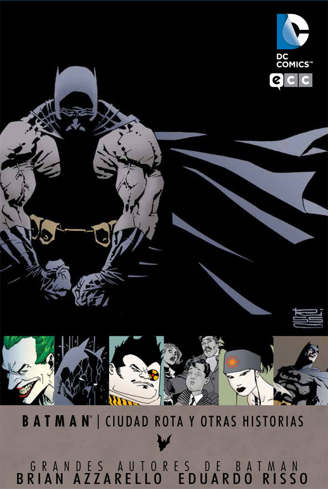Cuando se habla del equipo artístico que forman Brian Azzarello y Eduardo Risso por fuerza viene a la cabeza 100 balas (aquí, la reseña del primer volumen), la magnífica serie negra que crearon de principio a fin, pero no es lo único que han hecho juntos. Batman ha sido protagonista de su trabajo en cuatro ocasiones y por ello ECC les dedica un volumen de su serie Grandes autores de Batman. Si algo caracteriza a estas historias, especialmente a los guiones de Azzarello, es la variedad. El suyo no es un Batman homogéneo y encuentra aspectos muy diferentes entre sí. El de Risso lo es más, aunque obviamente se nota el paso del tiempo en su trazo y que una delas historias, El Caballero de la Venganza, muestra a un Batman alternativo. Y es en esa espléndida e impactante historia donde el dúo alcanza su cúspide creativa a la hora de interpretar al personaje, lo cual no deja de ser paradójico. En realidad, Azzarello y Risso sólo han acometido una gran historia de Batman, la que da título al libro, Ciudad rota, y esa, de marcado caracter noir, llegó a continuación de un arco argumental mucho más famoso por la incontenible fama de Jim Lee, Silencio, con el que guarda algunas similitudes en la multiplicación de personajes. Pero Azzarello y Risso son Azzarello y Risso. Si crean, hay que leer.