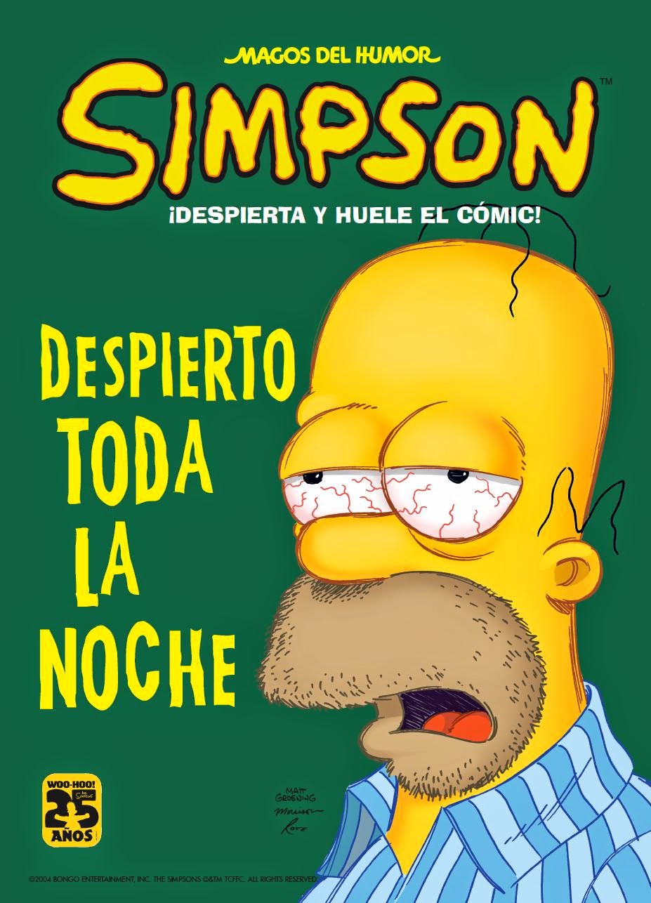 La fórmula Simpson no tiene fin ni momento histórico concreto. Despierto toda la noche es una historia publicada en 2004 desgajada de una serie de televisión que debutó nada menos que en 1989. Y su humor sigue tan fresco como el primer día. El cómic, sin mayor presencia de su creador, Matt Groening, que su firma en la portada y en la contraportada, es un digno heredero de la serie televisiva, hasta el punto de que la historia central de este volumen casi podría constituir un capítulo de la misma. Ian Boothby, guionista de la misma, entiende el humor Simpson a la perfección y desarrolla una historia descabellada e hilarante, que mezcla con mucho acierto referencias muy diversas sin salirse nunca de lo que caracteriza a la serie. El dibujo del volumen, tanto de ese relato principal como de los tres más cortos que lo completan, no es innovador, es simplemente continuista con lo que se ve en la pequeña pantalla, pero eso es suficiente como para seguir disfrutando de la experiencia. Y es que Los Simpson son todo un icono que funciona en diversos formatos y sin fecha de caducidad.