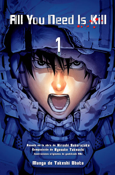 No es fácil deducir qué parte del acierto de la versión manga de All You Need Is Kill (que traducido sería algo así como Todo lo que necesitas es matar) está en la novela original de Hiroshi Sakurazaka y no en la adaptación de Ryösuke Takeuchi, pero hay dos elementos claramente disfrutables en sus páginas. Por un lado, la intriga que propone ya desde su primera página, en la que se anuncia la muerte del protagonista. Y por otro, el más salvaje que trepidante ritmo que tiene el relato. Con esos dos elementos, es fácil intuir que estamos ante una modélica primera mitad de una historia de ciencia ficción que avanza gracias a sus espléndidas escenas de acción que dibuja Takeshi Obata partiendo de los espléndidos diseños de Yoshitoshi ABe, pero también por saber ir al grano. All You Need Is Kill no necesita dar protagonismo a demasiados personajes y se vuelca en su protagonista, Keiji Kiriya, un soldado que descubre que tiene una inusual habilidad en la guerra que sostiene la humanidad contra unos monstruos denominados Miméticos, y en la presencia de Rita Vrataski, una combatiente de primer nivel, un ídolo entre las tropas.