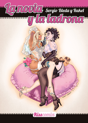 Con el sello de Kiss Comix en la portada, es bastante fácil adivinar lo que ofrece La novia y la ladrona, uno de los primeros trabajos de Sergio Bleda en el mundo del cómic (junto con la colaboración de la escritora Rakel, pseudónimo de Raquel Sánchez Honrubia). Estamos ante una fantasía erótica salvaje, exagerada, voluptuosa y divertida, que es lo que pretende el cómic erótico desde este punto de vista, una diversión culpable y sexual que parte de un entorno de ensoñación lujuriosa. Sus protagonistas son lo que dice el título, una mujer que está a punto de casarse pero que aún no ha consumado el acto sexual con su prometido a pesar de que ella ha intentado arrastarle a la cama de mil y muy explícitas maneras, y una ladrona cuya líbido esta por las nubes y que precisamente asalta la casa de esa novia. El deseo sexual unirá a estas dos mujeres en la cópula y en el crimen y lo que hizo Bleda fue darle una serie de rocambolescas aventuras en las que los diálogos explícitos pasan por todos los lugares comunes imaginables del porno y las situaciones son tan intensas que se disfrutan mejor como parte de esa fantasía.