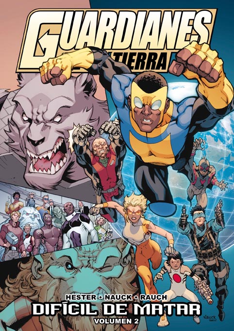 Ahí es donde entra Nauck. Es un ilustrador más clásico de lo que son los más habituales del universo de Image, como puedan ser Cory Walker o Ryan Ottley, pero al mismo tiempo no hay nada en su trabajo que chirríe a quienes hayan disfrutado antes con series como Invencible (aquí, reseña de su primer volumen) o El asombroso Hombre Lobo (aquí, reseña de su primer número), personaje invitado en Difícil de matar. Esa atractiva mezcla le permite desarrollar con mucho acierto las escenas de acción, encontrando siempre puntos de vista espectaculares, y mostrar a todos los personajes de la manera correcta (aunque él mismo confiesa que le costó captar el mejor aspecto posible de Yeti). Nauck ofrece al final un espléndido tebeo de superhéroes, en el que destacan las anatomías perfectas, los poderes atractivos y los trajes llamativos. Y eso es lo que se dice cumplir con creces los objetivos que se le plantean en una serie como Guardianes de la Tierra. Por eso, aún asumiendo que es menos trascendente como tebeo que Invencible (no por falta de acontecimientos decisivos o traumáticos, que quede claro), es una lectura sumamente entretenida.