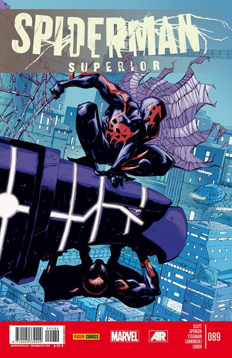 Si hasta las propouestas a priori más rocambolescas funcionan, ¿cómo no aceptar la propuesta de Dan Slott en Spiderman Superior? No pasa un número de este extenso arco argumental sin que las apuestas aumenten, y hacia terrenos no siempre predispuestos al éxito. Cruzar de nuevo los caminos de este Spiderman con la mente de Otto Octavius con el Spiderman de 2099 es un nuevo atrevimiento más de Slott… y de nuevo le sale bien. No hace falta buscar razones, simplemente funciona. Funciona la acción, el planteamiento y, sobre todo, el desarrollo de la historia también sus pequeños detalles, con un Peter Parker cada vez más al límite en todos los aspectos de su vida aunque Octavius no quiera asimilarlo, cegado por su ego, y con un modesto pero trascendental papel de las mujeres que hay en su vida, desde la excepcional y fugaz aparición de la Gata Negra hasta la determinación de Mary Jane o Carlie. Y con la capacidad de mantener el nivel sea quien sea su dibujante. Entre Humberto Ramos, ausente en este número, Ryan Stegman y Giuseppe Camuncoli, conforman un Spiderman tan diferente entre los estilos de cada uno como atractivo en todo momento. Con ellos, Slott se puede permitir el lujo de poner en sus guiones lo que quiera, porque van a responder. Y el caso es que sí, pone lo que quiere, lo que hace de este un tebeo atrevido y valiente.
