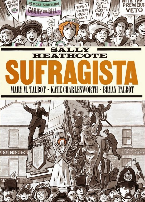 Hay pocos medios más indicados que el cómic, quizá sólo el cine, para dar a conocer figuras históricas que hayan tenido una importancia notable por alguna razón pero que hayan quedado sepultadas por el peso de otros nombres más conocidos. Sally Heathcote: Sufragista es un título que podría encajar a la perfección en ese ámbito de las viñetas salvo por un detalle: es la biografía de una mujer que no existió. Todo a su alrededor sí, y eso convierte a la novela gráfica en un documento valioso, pero es también una extraordinaria historia de ficción de una mujer que comenzó trabajando en el servicio doméstico de una de las fundadoras del movimiento sufragista británico y que acabó siendo mucho más que eso. El cómic vive una evolución similar, lo que hace que sea más apasionante aún desde el punto de vista narrativo. Lo que podría ser una simple biografía, se acaba transformando en un relato social emocionante, más grande que la misma lucha de la que habla y con una espléndida protagonista, una heroína que llena los zapatos del arquetipo y al mismo tiempo es un personaje distinto, especial, muy atractivo y en el que se marca una evolución que no hace más que dotar de verosimilitud a todo el relato. La pareja que forman en la vida real Mary M. Talbot y Bryan Talbot han creado una historia compleja y emocionante, completada por Kate Charlesworth dando unas tintas tan sencillas como bellas.