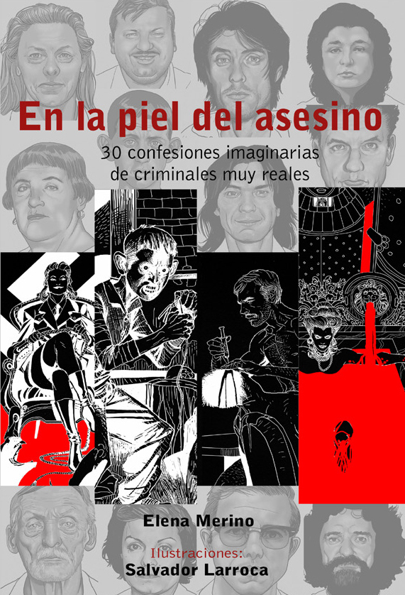 Hay dos maneras de sumergirse en el mundo perverso e insano que evoca En la piel del asesino, libro que sitúa perfectamente al lector en sus propósitos con su subtítulo, 30 confesiones imaginarias de criminales muy reales. Por un lado, leyendo los completos y muy documentados escritos de Elena Merino, que pasan por el relato biográfico, personal, psicológico, familiar y criminal de esa treintena de asesinos recopilados en este volumen, en realidad 31 a pesar de su título, Por otro, contemplando las aterradoras ilustraciones que ha realizado Salvador Larroca, las láminas que ilustran cada uno de los casos y que capturan la esencia de cada uno de estos asesinos de una forma a priori sencilla pero terriblemente descriptiva. Y como En la piel del asesino provoca una simbiosis casi perfecta entre una y otra lectura, se convierte en un libro muy completo para los estómagos capaces de soportar semejante colección de atrocidades como se reúne en sus poco más de 500 páginas. Merino ofrece declaraciones reales de estos criminales en la mayoría de los casos, un listado completo de sus asesinatos y una ficha con los nombres completos, las nacionalidades y las fechas, lugares y detalles del nacimiento y la muerte de cada uno de los monstruos. Larroca les retrata de forma realista de frente y de perfil, emulando las fichas policiales (que en algún caso sirven de referencia para estas ilustraciones), y de forma más artística para abrir cada uno de los capítulos.