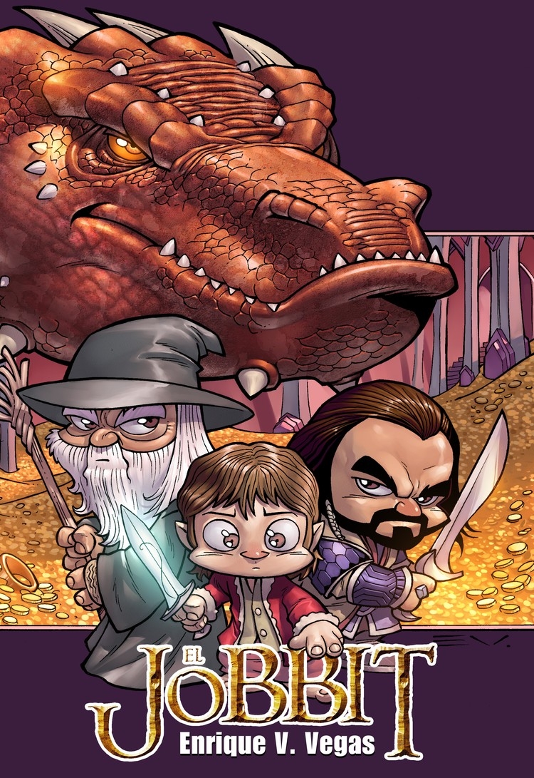 El Jobbit nace como excelente complemento de El Cabezón de los Anillos (aquí, su reseña), su otra parodia de inspiración tolkiana. El resumen que hace Vegas de la trama es casi perfecto para mantener un ritmo muy alto y una diversión muy acusada. Porque, en el fondo, es terriblemente divertido que la historia se convierta en un mcguffin tan absurdo como que Bimbo, sosias cabezón del Bilbo de Tolkien, siga a los enanos en su loca aventura porque no le pagan la cuenta de la famosa cena en Bolsón Chapado (ojo al mapa que aparece para mostrar el viaje del grupo, consiguiendo que Éuribor suene élfico o que el mítico pueblo de Regreso al futuro se cuele en la Tierra Media). A partir de ahí, Vegas cuela chistes por doquier, divertidos en la mayoría de los casos, buenas derivaciones paródicas de la película, haciendo que Smaug lance algo peor contra el pueblo que llamas por su boca y un montón de divertidas peleas al más puro estilo de su autor. Vegas se permite el lujo incluso de recuperar la resolución que ideó Tolkien para la batalla final, prescindiendo de fuegos de artificio y lanzando así un último chiste para el lector que conozca tanto el libro original como la versión cinematográfica de Jackson. Hay tanto detalle en tan poco espacio que con El Jobbit es igual de difícil que siempre que haya algún atisbo de decepción.