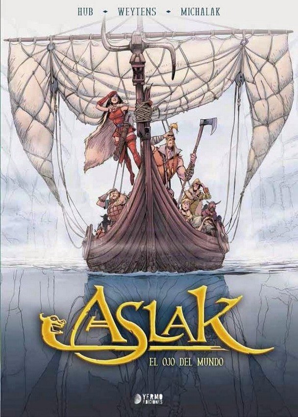 Como buena historia de vikingos que es, Aslak entra fundamentalmente por los ojos. Si el guión de Hub y Weytens es una mezcla de tonalidades bastante compleja y equilibrada, el dibujo de Michalak logra un acierto incluso superior en ese terreno. En línea con el tebeo europeo de entretenimiento y comedia más clásico, y es imposible no pensar en algunos momentos en Astérix, el ilustrador diseña a los personajes con un carisma juguetón y caricaturesco. Y eso no resta impacto en absoluto a las escenas más adultas y violentas que tiene el volumen, crueles incluso (como el arranque del segundo álbum), que son unas cuantas. Al fin y al cabo, lo que narra Aslak es un viaje lleno de peligros, y si esos peligros no fueran reales el impacto de la serie no sería el mismo. Su fantasía no es amable, sino más bien oscura, y eso también lo dibuja Michalak francamente bien, apostando por unas viñetas no demasiado grandes (como es tradición en el cómic europeo) y aún así llenas de detalle. Aslak. El ojo del mundo es una aventura trepidante, de ritmo muy intenso, que casi no deja tiempo para respirar y que funciona igual de bien en su lado cómico y en su vertiente de fantasía heroica. Su límite está, por el momento, en su asumido carácter de entretenimiento, pero en cualquier caso es resultado es notable.