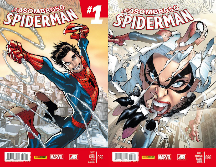 Slott tiene la enorme capacidad de transitar terrenos que pueden enfadar al aficionado y salir más que airoso. ¿Hacía falta otro personaje que compartiera el origen de Spiderman y que naciera precisamente ahora, cuando la identidad del personaje ha estado más comprometida que nunca? Probablemente no. Y sin embargo, la lectura convence. El regreso de Peter es tremendamente divertido, no hay más que ver la primera peripecia que vive el Trepamuros en el primer número (y las consecuencias que tiene más adelante, sobre todo en su reunión con los Vengadores), y en ese tono de comedia acaba encajando de alguna manera difícil de explicar todo el drama que hay en esta nueva vida para el protagonista. Y la forma en la que escribe a la Gata Negra devuelve a Felicia Hardy a la primera línea de una manera espectacular. Slott no cierra historias, sino que va acumulando aspectos. A diferencia de Spiderman Superior, todavía no hay claras divisiones de lectura y de esta manera el aficionado está obligado a seguir todo el periplo para entender todo lo que está sucediendo. Eso sí, hay constantes recordatorios de todo lo acontecido que además no cortan el ritmo y este nuevo Spiderman, en realidad bastante clásico (o al menos deudor del tono que el personaje tenía antes del traumático paso por el Superior).