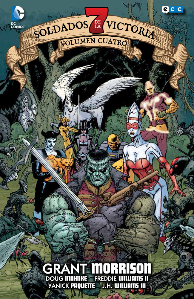 Desde el principio, Grant Morrison fue muy ambicioso con 7 soldados de la victoria. Su idea de crear una serie de miniseries que confluyeran en un mismo punto para dar cierre a una historia compleja de fantasía de diferentes sensibilidades pero con un encaje en el universo DC arrancó muy bien. Morrison dejó muchos elementos de interés, algunos de los cuales ha sabido desarrollar bastante acertadamente. Pero el cierre de la serie en este cuarto volumen deja algo de indiferencia. Es difícil decir cuándo se empezó a perder el encanto, porque lo bueno está repartido entre todas las series que conforman este experimento, las que se cerraron en los volúmenes previos y las que acaban en este último, pero cerrar el libro después del clímax no deja en el lector la sensación satisfactoria que merecería la ambición con que se planteó este invento. Al final, da la impresión de que un cierre propio de cada una de las miniseries podría haber servido mucho mejor a los personajes, porque el final, a pesar del dibujo y la experimentación visual de J. H. Williams III, que se queda lejos de lo que había conseguido en el número que abrió esta saga, es bastante inofensivo. En ese final, las miniseries y sus protagonistas pierden personalidad. Es un batiburrillo entretenido pero no brillante. Y 7 soldados de la victoria se queda así en algo parecido a un buen intento de hacer algo más grande que no se consiguió del todo.