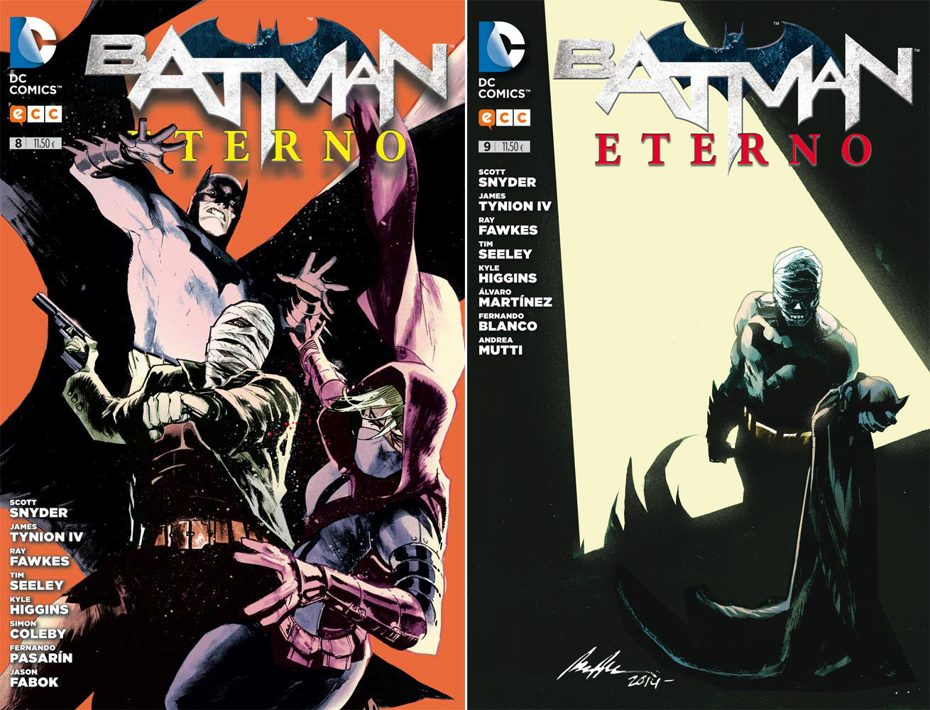 A la hora de evaluar la parte gráfica de Batman eterno, sigue siendo inevitable referirse a su carácter semanal y que eso obliga a un continuo trasiego de ilustradores que no superan los dos números consecutivos, algo que, de hecho, es ya toda una hazaña. Simon Coleby aporta un toque de suciedad muy agradecido para el episodio de corte muy fantástico y grandilocuente que le toca ilustrar. Fernando Pasarín supera los detalles que no terminan de convencer en sus rostros con una muy buena puesta en escena. Jason Fabok, quizá el mejor de los ilustradores que han pasado por la serie, se ocupa de dos números a los que dota de muchísima espectacularidad. Álvaro Martínez y Fernando Blanco, desde estilos muy diferentes, encuentran también un nivel muy alto. Y quizá lo más flojo de estas dos entregas, aunque al final también consigue viñetas atractivas, está en el trabajo de Andrea Mutti. Sigue siendo un vaivén de estilos demasiado grande y, a estas alturas, ya no demasiado justificado en que la historia se centre en uno o en otro personaje. A pesar de esto, que es más bien un obstáculo que un buen catálogo de ilustradores, Batman eterno llega ya a su tercio final manteniendo la atención. Pero también con ganas ya de resolución.