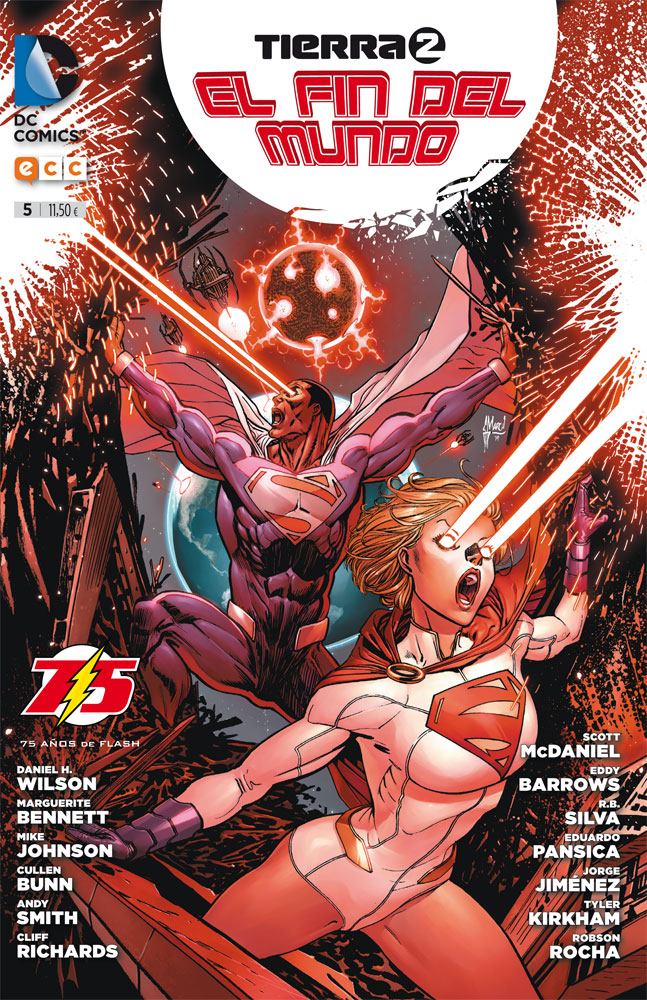 Y no sólo eso, es también una traba para saber a quién atribuir lo que a cada lector le pueda parecer atractivo. ¿Quién ha decidido que Power Girl asuma en su pecho el emblema de la casa de Superman? ¿Ha sido una decisión colectiva de Daniel H. Wilson, Marguerite Bennett, Mike Johnson y Cullen Bunn o una propuesta de uno de ellos aceptada por los demás? Y así, con todo. De esa manera, lo que ofrece Tierra 2. El fin del mundo es un disfrute muy segmentado, con indudables aciertos que muestran que esta serie ha sabido ir entendiendo las diferentes personalidades de cada uno de los héroes que ha ido necesitando para dar fuerza a esa gran guerra de fondo, pero al mismo tiempo con un caos y una falta de control que alejan el relato de ese objetivo final. Se asimila con dificultad que apenas queden un centenar de páginas del evento y que, en realidad, no se vislumbre nada demasiado concreto. En realidad, el problema es el origen. Tierra 2 (aquí, reseña de su primer número) era una serie modélica. Las mejores del mundo (aquí, reseña de su primer número), también. Sabían lo que eran y lo que querían ser. Pero El fin del mundo (aquí, reseña de su primer número) es una caótica confluencia entre ambas y la misma continuidad del universo DC. Un caos entretenido, a veces incluso muy conseguido, pero un caos al fin y al cabo.