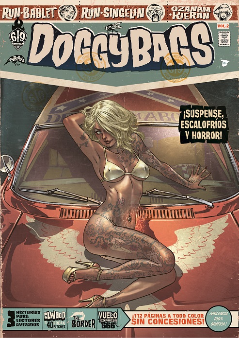 Lo gamberro no pasa de moda. Y Doggy Bags es gamberro. Mucho. El concepto que ya se mostraba en el primer volumen de la serie (aquí, su reseña) es sencillo: historias violentas, salvajes, propias de la serie B y casi de la serie Z, una macarrada en toda regla de esas que buscan diversión en la violencia desatada. RUN, ideólogo de este invento, se reserva de nuevo una historia en este número y ofrece a otros autores el espacio para se explayen en estos placeres culpables, en estos festines de incontrolable y de la sangre, en sus historias de premisas descabelladas o asombrosamente reales. ¿Y qué es lo mejor de todo esto? Que funciona. Que nadie espere ver aquí historias con potencial para ganar un premio Eisner, pero sí relatos divertidos como ellos solos, desmadrados y extremos. Uno es una fantasía completa, otro parte de una situación real y el mito que rodea al escenario y el tercero es, pásmense todos los lectores, una historia real, como se explica en el texto que cierra ese segmento. Doggy Bags es al thriller de acción lo que En los límites de la realidad o Cuentos asombrosos a la ficción televisiva fantástica. El concepto es una delicia. ¿Cómo no disfrutar con él cuando se nota que los autores se lo han pasado tan bien? Es un viaje que roza el absurdo, ¿pero a quién no le gusta traspasar los límites de vez en cuando?
