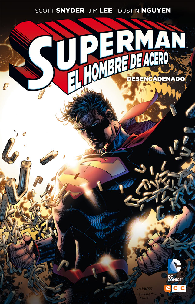 En la industria del cómic, como en general en la industria del entretenimiento, no hay nada seguro. Puedes apostar por autores consagrados, por un personaje infalible, por un formato apetecible y por el momento adecuado, y que la cosa salga mal. O, al menos, que no satisfaga las expectativas. Eso sucedió con Superman: El Hombre de Acero. Desencadenado. Scott Snyder y Jim Lee al frente. Superman, el primer superhéroe. Una serie anunciada con vocación de perdurar, de ser la nueva cabecera mensual del personaje. Y el 75º aniversario de Superman, coincidiendo con el estreno en cines de El Hombre de Acero (aquí, su crítica). Pero el invento no cuajó. Desencadenado se planteó precisamente como un reflejo de lo que Zack Snyder hizo en el cine, una película de gran presupuesto y espectacularidad a todos los niveles, pero exigiendo al lector muchas concesiones, y no sólo derivadas de una aficionada lectura de años, sino incluso en extremos bastante llanos. Pero, con todo, es una de esas lecturas que ofrecen un entretenimiento digno, incluso aunque su pretenciosidad de convertirse en una historia definitiva haga que las miradas sean con más recelo del que merece. Snyder aplica mucha solvencia a los elementos más arquetípicos y Lee combina viñetas impresionantes, las más grandes, las que a él le gustan, con momentos más convencionales.