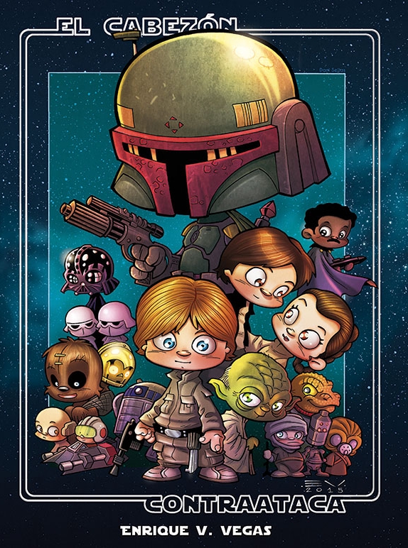 Es inevitable recordar el impacto que produjo El Imperio contraataca (aquí, su crítica) para todos los aficionados de Star Wars. La más querida de la trilogía original por casi todos los aficionados aunque para eso siempre haya debate, la más adulta, un salto hacia adelante en la historia y en el tono de la saga y el título que convirtió a Darth Vader en el mito que es a los acordes de la memorable Marcha Imperial de John Williams. Con esa premisa, parodiar El Imperio es una tarea muy ardua. Mucho más que hacer frente al Episodio IV (aquí, su crítica). Pero mucho más. Por eso, El Cabezón contraataca, la secuela de Los Cabezones de las galaxias (aquí, su reseña) es una obra complicada de evaluar. Es, como siempre, una muy atractiva comedia urdida por Enrique V. Vegas, que no se sale de sus premisas habituales y que responde a lo que se puede esperar del autor, una buena compilación de chistes y gags visuales que se aprovechen no sólo de lo que George Lucas tenía en la cabeza ya aquí como productor y no como director, sino también de otras muchas franquicias, objeto de la simpática vis cómica que desprende el tebeo. Pero es complicado, porque El Imperio es mucho Imperio, y aún así Vegas sale más que airoso y sigue prolongando una serie muy amena y ligera que tiene su punto fuerte, como siempre, en sus muy atractivas versiones cabezonas.