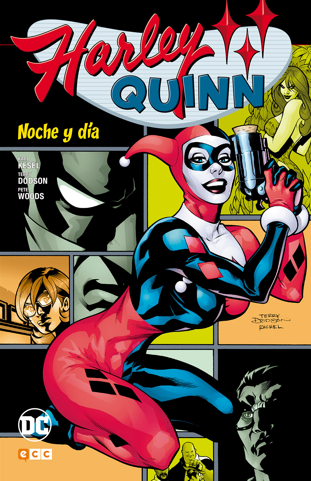 Los números que forman este segundo volumen de Harley Quinn, la serie que protagonizó el personaje a comienzos de siglo, muestran a las claras la irregularidad que parece marcar siempre cada andadura de la antigua compañera del Joker. Se mezclan ideas fabulosas, y no hay manera de considerar de otra manera la idea de Harley de vestir el traje de Batgirl y lanzarse a combatir el crimen, con otras que acaban siendo algo farragosas, como la de formar su banda de Quinnitos. Se nota que Karl Kessel, desde luego, le tiene cariño al personaje, y busca situaciones en las que se puedan explotar sus rasgos más divertidos, incluyendo alguna trama que ya exploró Batman. The Animated Series, la de Harley saliendo de compras, como ya sucedió en el primer libro recopilatorio de esta colección, Preludios y chistes malos (aquí, su reseña). La idea es clara, apostar sobre seguro, llevar al personaje a territorios conocidos en muchas ocasiones y, cuando toca salirse, hacerlo con inteligencia. Kessel, apoyado en el siempre atractivo dibujo de Terry Dodson, y aunque este no firma todos los números de este volumen, logra lo que necesita Harley Quinn: locura. Y no hace falta tampoco que sea un cómic rompedor precisamente porque sabe moverse en ambientes que satisfarán a los aficionados más antiguos del personaje y recordarán a quienes se han sumado al carro en los últimos años que Harley es más que un reclamo sexual de primer nivel.