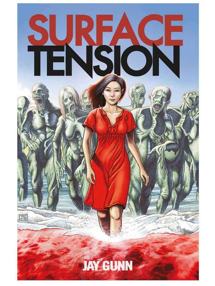 Para ser su primer cómic, no se le puede negar a Jay Gunn unas ambiciones muy altas. Surface Tension es una obra compleja, hipnótica de muchas maneras, de diferentes lecturas y con un alto poder evocador. Esa misma complejidad hace que no siempre sea difícil la inmersión en el atractivo mundo que plantea Gunn, uno que tiene muchas influencias reconocidas, comenzando por el mundo de Hayao Miyazaki, siguiendo por las no reconocidas, la de H. P. Lovecraft, y continuando por series de corte postapocalíptico tras una catástrofe que amenaza el futuro de la humanidad o por películas de ciencia ficción de los años 50 y 60, como por ejemplo las de la serie que inicio El experimento del Dr. Quatermass en 1955. En esa amalgama de género, Gunn se mueve muy cómodamente para ir contando, poco a poco, cómo es el mundo resultante de un suceso en el que tiene que ver el mar y la desaparición de buena parte de los seres humanos del planeta, que desarrolla en un ambiente cercano, un pequeño pueblo británico, y en el que cobran una importancia capital temas como la fe, la religión, el miedo o la discriminación. Surface Tension sufre, quizá, de tocar demasiadas cosas en demasiado poco espacio, pero sus personajes son lo suficientemente interesantes y su escenario de ciencia ficción es tan atractivo que eso no limita sus muchos aciertos.