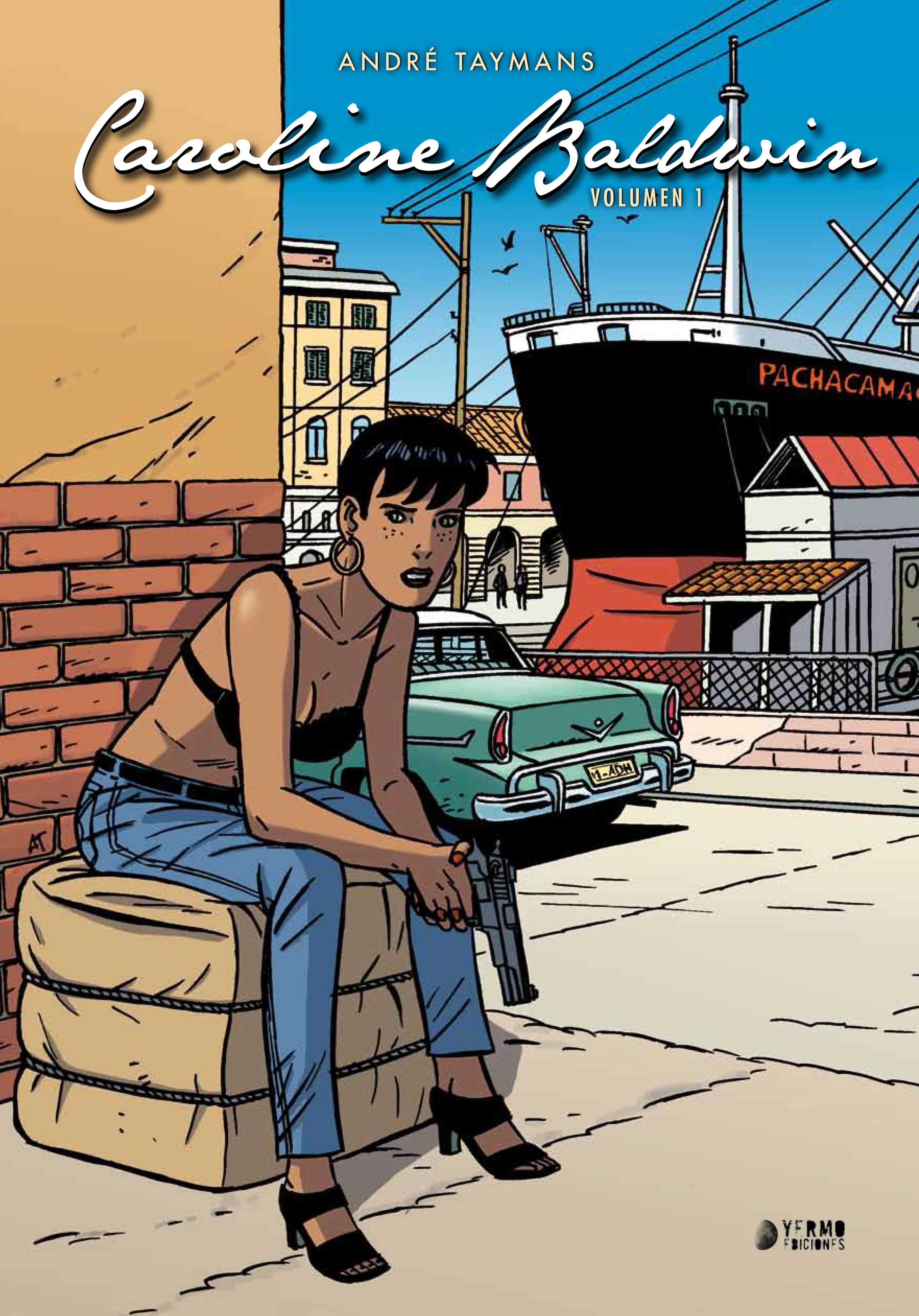Una mujer como protagonista de una historia de intriga y trabajando como detective privado no es algo notablemente novedoso. ¿Qué distingue entonces Caroline Baldwin de esas otras cabeceras? Su tono depresivo. Baldwin es una mujer llena de flaquezas. O, al menos, de puntos poco optimistas. No es una estratega brillante e infalible, como se ve en los cuatro primeros álbumes que reúne este primer volumen recopilatorio. Con frecuencia, sus enemigos van un paso por delante o sorprenden a la protagonista. Tiene una seria adicción al alcohol. Presenta carencias afectivas de libro, lo que lleva a Caroline a mantener frecuentes relaciones sexuales con hombres a los que no conoce de nada. Y no es especialmente afortunada. Con ese cóctel, André Taymans, crea un relato bastante atractivo, mejor por su propio concepto que por su acabado visual, no cabe duda de que es llamativo y personal pero en ocasiones también algo limitado, como ya comprobamos en el trabajo de Taymans en la posterior Las tribulaciones de Roxane (aquí, su reseña), con la que comparte también el gusto por poner a una mujer como centro de una historia de misterio amable y colorista. Esta, desde luego, es más oscura y eso se agradece, porque ese lado amargo y casi decadente de la vida es el que muestra Caroline Baldwin, enmascarándolo con la aparente jovialidad de sus arquetipos.