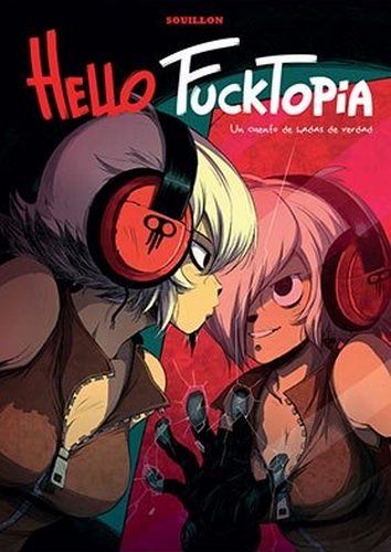 Viendo la portada de Hello Fucktopia y el subtítulo que acompaña a la obra, Un cuento de hadas de verdad, casi cabe pensar que lo que estamos a punto de leer es una historia de fantasía. Pero no, con lo que hay que quedarse es con la última palabra, “verdad”. Souillon nos lanza una de esas historias que bucean en la realidad, que nos cuentan sensaciones tremendamente cercanas e íntimas. Y no es que sea una obra perfecta, ni mucho menos, pero no necesita serlo para dejar un sabor de boca espléndido. Mali, Thémis y Stéphane forman un triángulo de amigos singular. La primera, protagonista indiscutible de la obra, es la típica joven que no está a gusto con lo que hace, que oculta un secreto bajo esos auriculares y que emocionalmente tiene bastantes problemas. Y es, además, el nexo de unión con los otros dos. Souillon habla de una manera tan personal que resulta inevitable pensar que hay muchos elementos biográficos en la historia, incluso en los tres personajes, que, con sus problemas y sus emociones nada intercambiables, parecen tres partes de una misma alma. Y gracias a eso consigue que Hello Fucktopia emocione, duela y anime cuando corresponde, en función de los estados de ánimo de sus protagonistas. Eso, aunque haya más un recorte de un instante que una historia propiamente dicha, basta y sobra para convencer de manera notable.