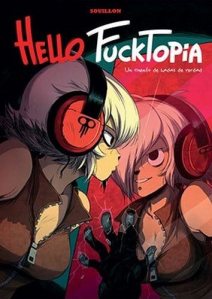 Ankama Editions publicó originalmente Hello Fucktopia en noviembre de 2014. El contenido extra lo forman una introducción de Souillon, dos páginas de bocetos y diseños y una ilustración de Raf.
