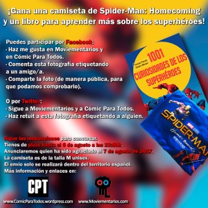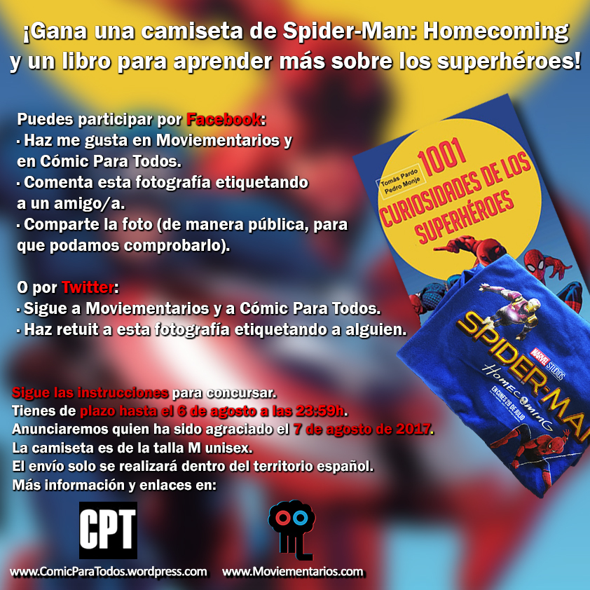 El estreno de Spider-Man. Homecoming es el 28 de julio y por ello sorteamos una camiseta cortesía de Sony Pictures, distribuidora del filme. En ella, además del título de la nueva película del hombre araña, figuran tanto Spider-Man como su amigo y Vengador, Iron Man. Pero te vamos a dar la herramienta perfecta para documentarte antes, por si eres un extraño caso que no conoce a Spider-Man.