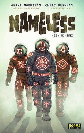 Batman y Robin unieron los destinos de Grant Morrison y Chris Burnham y Nameless los ha llevado a otro nivel. Lejos de los superhéroes, los autores nos muestran algo completamente diferente en todo, empezando por la temática pero continuando con la narrativa. ¿Qué es exactamente Nameless? Puede que lo mejor sea no saberlo antes de adentrarse en sus páginas, sobre todo por su psicodélico primer número, que es el que finaliza con la presentación del tema que, en teoría, centrará el relato: un meteorito va a impactar contra la Tierra y se reúne un equipo para evitar la catástrofe. ¿Suena demasiado a superproducción hollywoodiense? Repasemos de nuevo el nombre de los autores, Morrison y Burham. ¿No queda así totalmente claro que vamos a encontrarnos algo totalmente distinto? Si la respuesta es que no, vamos a la cubierta del volumen. Solo con ese brutal diseño que contemplamos queda claro que esto no un relato heroico y plano. Hay mucho más. Hay espacio y monstruos, como quería Burnham, pero hay ocultismo, mitología y terror, como le gusta a Morrison. ¿El resultado? Una auténtica gozada. Una, demás, que invita a una segunda lectura, y puede que a una tercera, porque es una historia inteligente, compleja y retorcida, que tiene muchos elementos en su interior, y no todos a simple vista, como para dar por zanjada la experiencia al cerrar el libro.