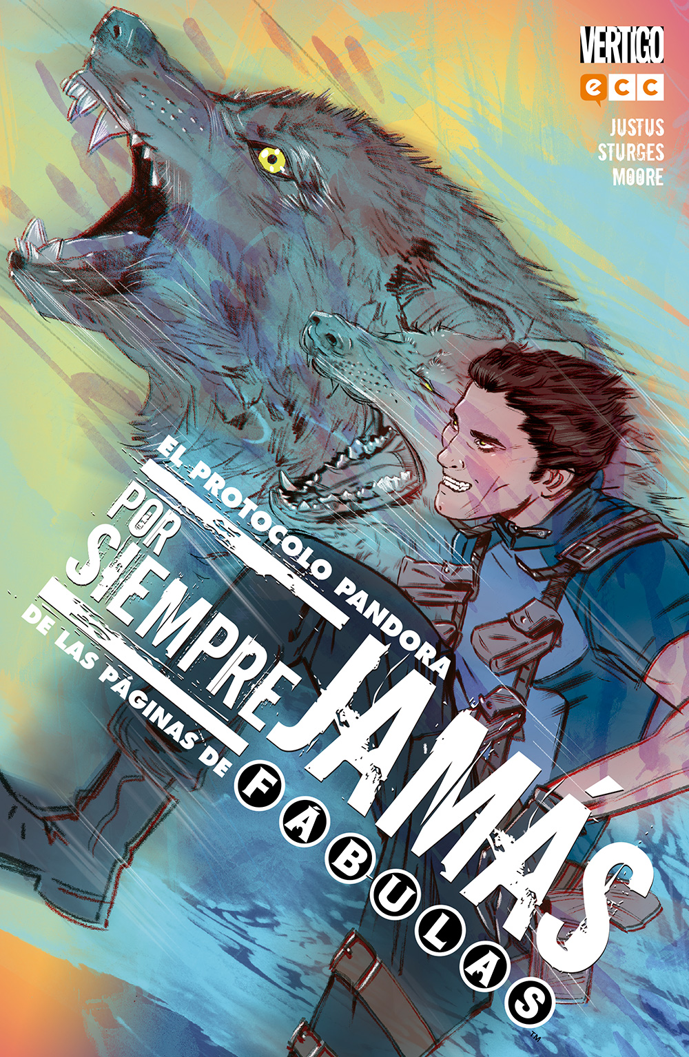 “Quiero dejar una cosa clara desde el principio. No estamos hablando de fábulas tal y como has entendido el concepto hasta ahora”. Esa es la primera frase de Por siempre jamás, una serie que ya lleva el subtítulo de De las páginas de Fábulas. Apasionante contradicción esta, ya que estamos hablando de una serie que sale de la creación que Bill Willingham dio por cerrada y que, siendo parte de su mundo, quiere ser algo diferente. ¿Lo consigue? A medias. Busquemos un paralelismo que, siendo bastante distinto, puede al menos mostrarnos qué quieren hacer Dave Justus y Matthew Sturges. El propio Willingham había recogido el universo del Sandman de Neil Gaiman para hacer Merv Pumpkinhead. Agente de S.U.E.Ñ.O. (aquí, su reseña), un intento de hacer una historia de espías con toques de comedia. Por siempre jamás no es exactamente lo mismo, pero es difícil resistirse a la comparación, porque Justus y Sturges adoptan a Connor, hijo de Lobo y Blanca, para convertirle en un agente secreto que se burle de las convenciones del género de espías sin faltar al respeto y que, al mismo tiempo, acepte como propias algunas características de Fábulas. El resultado, muy bien dibujado por Travis G. Moore, es fresco y simpático, nada especialmente nuevo, aunque una buena excusa para mantener vivo este universo de fantasía.