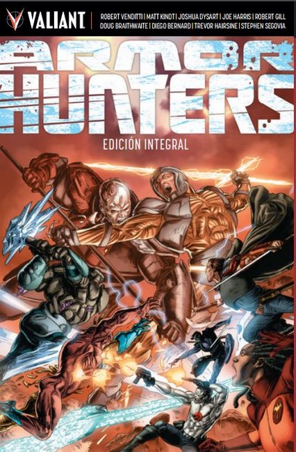 El dibujo ayuda también a esa sensación de uniformidad. Valiant, para bien casi siempre, pero en algún aspecto también para mal, ha definido un estilo propio del que pocas veces se sale. Y eso se nota en integrales como este, en el que muchas veces hay que ir a las páginas de los créditos para reconocer a los diferentes ilustradores. No es que hagan mal trabajo, en absoluto, porque esa suerte de marca Valiant es atractiva y notable, pero sí que es verdad que se echa en falta en ocasiones algo más de riesgo. Armor Hunters no es, probablemente, el mejor escenario, para lanzarse a experimentar, y por eso no ha de entenderse como una crítica negativa este aspecto, porque de lo que aquí se trata es, como en muchas ocasiones dentro de este universo, de mostrar por un lado una espectacularidad de gran escala y por otro un cuidado minucioso de los personajes, que siempre se desenvuelven, también en lo visual, en escenarios que les son muy adecuados. Puede que sea algo exagerado decir que Armor Hunters es el macroevento que reconciliará a los lectores con los macroeventos, pero sí que se puede afirmar con total tranquilidad que es una lectura muy atractiva, que en sus puntos álgidos alcanza niveles muy acertados y que no tiene grandes bajones a pesar de la irregularidad que se admite en este tipo de relatos.