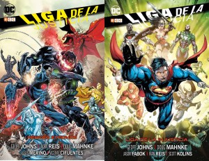 Los volúmenes incluye los números 24 a 39 de Justice League, publicados originalmente por DC Comics entre octubre de 2013 y abril de 2014. El contenido extra lo forman una introducción de Jorge García, las portadas originales de Ivan Reis, Aaron Kuder, Jon Katz, Dan Panosian y RC Stoodios y varios bocetos y páginas a lápiz de Ivan Reis.