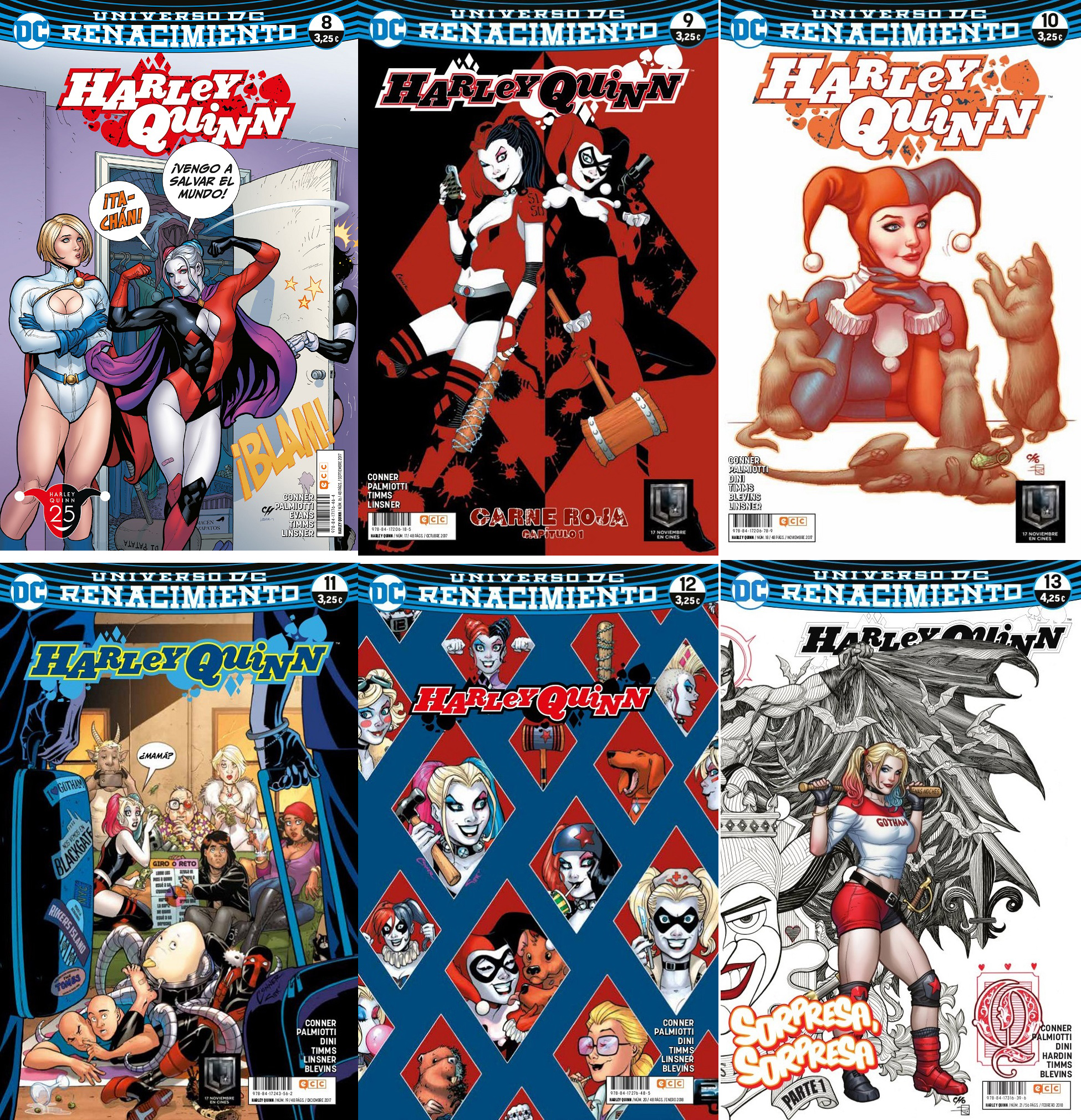 Estas entregas incluyen los números 15 a 26 de Harley Quinn, publicados originalmente por DC Comics entre marzo y agosto de 2017. El único contenido extra son las portadas originales de Amanda Conner y Frank Cho.