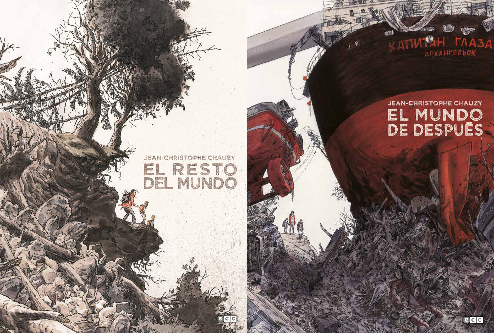 Las historias de catástrofes seducen no solo por la catástrofe en sí, sino por la forma en la que los protagonistas son llevados al límite de lo humano. El díptico que forman El resto del mundo y El mundo de después, es una propuesta en la que Jean-Christophe Chauzy se centra precisamente en eso. No quiere dar explicaciones sobre el cataclismo que cambia el mundo para siempre, de las tormentas y terremotos que acaban con todos los lujos de la modernidad en la Francia contemporánea, y nos mete de lleno en la lucha por la supervivencia de una mujer separada luchando por encontrar y mantener con vida a sus dos hijos. En el escenario humano hay algo de tópico, y es que estas catástrofes no cogen casi nunca a personajes en plenitud o en fases de felicidad, sino a gentes que arrastran traumas y problemas que afectarán a su lucha por la vida, pero es cierto que eso narrativamente ayuda lo suyo. Lo que sí se disfruta es que el entorno en el que Chauzy coloca a Marie y a sus hijos es natural. No vamos a ver grandes monumentos derruidos, ni ciudades reconocibles devastadas. Es la naturaleza lo que se convierte en la esperanza y la amenaza en esta batalla. Y eso tiene un encanto indudable, a pesar de que no se trata de un díptico perfecto, puede que porque falte un camino marcado.