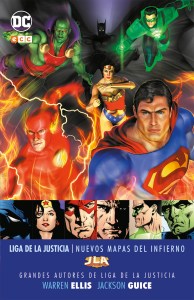 Para dar forma a Nuevos mapas del infierno, Ellis se encomienda a Jackson Guice. Su trazo es sucio y adulto. Lo es también en sus versiones de los héroes, a los que desposee de cualquier rasgo juvenil que pueda entreverse en alguna otra versión de los mismos personajes. Sabe ser espectacular cuando Ellis lo demanda y consigue extraer esa misma espectacularidad de momentos que no están llamados a ser lo más trepidante del relato. No hay más que ver el carisma que da a ese momento en el que la Liga se encamina, a pie, a pecho descubierto, hacia la Casa Blanca. Se le cuela algún homenaje visual al Batman de Neal Adams, pero en general quiere una personalidad propia, como se ve en la forma que utiliza el atuendo casual de Wonder Woman, la armadura de Green Lantern o incluso por la manera en la que sale del escenario más superheroico y se mete de lleno en la complicidad entre Lois y Clark. No es poca cosa, precisamente cuando el clímax de este relato es tan largo y se desarrolla en un escenario alejado de lo terrenal. Nuevos mapas del infierno es una historia completa y adulta, muy seria y bien llevada. Es Warren Ellis, aunque sea, en algunos aspectos, un Warren Ellis al que hay que alejar de algunos de sus temas favoritos. Eso sí, demuestra ser un todoterreno que sabe dar voz a personajes muy distintos entre sí.