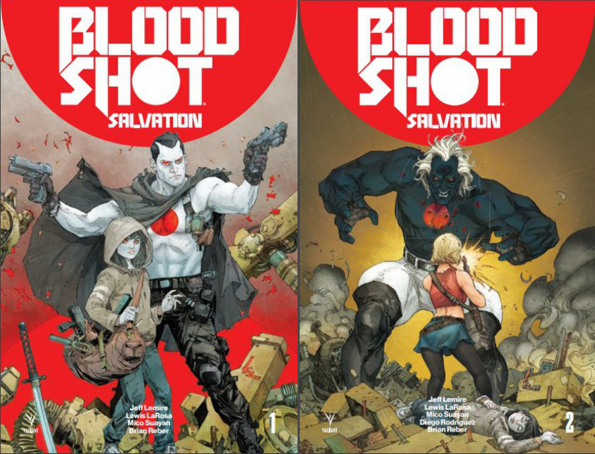 Con Blooshot Reborn (aquí, reseña de su primer número), Jeff Lemire ya nos enganchó de una manera magnífica a las aventuras de un personaje que, de base, puede parecerse a otros muchos pero que aquí cobró una personalidad increíble. Y con Blooshot Salvation lo ha vuelto a hacer. El cambio de escenario que se apuntaba en el epílogo de la serie anterior, Bloodshot U.S.A. (aquí, su reseña) es el punto de partida de esta nueva serie y se confirma como un gran acierto ya desde la primera secuencia. Que un superhéroe, o mejor digamos alguien con poderes para que Bloodshot no caiga en un saco en el que no es fácil encasillarle, tenga hijos es siempre una cuestión interesante. Lo que Lemire aporta a ese estereotipo que en el fondo ya hemos visto unas cuantas veces es una estructura temporal en dos fases. Vemos un futuro cercano y vemos el presente. Y lo hacemos, además, de la mano de dos dibujantes diferentes, Lewis LaRosa y Mico Suayan, para que de esa manera no hay equívoco posible de dónde nos encontramos. En otras palabras, Bloodshot Salvation le pone las cosas fáciles al lector para que no tenga que preocuparse más que de disfrutar de lo que está viendo. Y eso se consigue desde el principio, ya condicionados para bien con todo lo bueno que hemos leído hasta ahora pero sobre todo convencidos de lo que estamos viendo y de lo que puede venir.