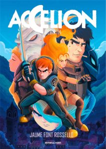 En lo visual, ya se ha mencionado el salto que hay desde el largo epílogo en blanco negro al color de lo que acaba siendo la historia propiamente dicha. Es, quizá, lo más llamativo de un tebeo dibujado con entusiasmo y con corrección, con un estilo intencionadamente juvenil y que, precisamente por su ausencia inicial de color nos invita a pensar en la era de las revistas y los fanzines que a tantos autores y lectores nos hicieron enamorarnos de este medio. La base más potente de Accelion está en su diseño, hay muchos personajes y todos consiguen una personalidad muy marcada ya desde un primer vistazo. Se roza así el estereotipo, pero si hay un género en el que eso funciona es precisamente en la fantasía. Font Roselló tiene sus limitaciones como dibujante y tampoco las esconde, volvemos de nuevo a la necesidad de que obras como esta, que se presentan como un sueño personal, sean sinceras, expone en las páginas todo lo que tiene y logra que eso sea más que suficiente para disfrutar. ¿Faltan cosas? Desde luego. ¿Todo lo que se ve es perfecto? Claro que no. Pero Accelion engancha, es inteligente en lo que cuenta y deja sembradas muchas semillas que recoger en el futuro, en los dos volúmenes que faltan, en el anunciado prólogo y, por qué no, en futuras continuaciones o spin-offs. ¿Por qué no, si este universo da ese juego?