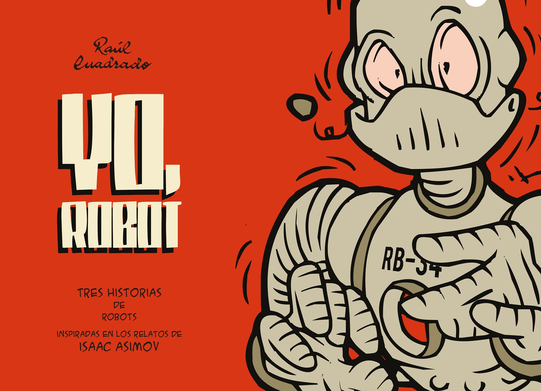 La aportación de Isaac Asimov al terreno de la ciencia ficción es tan descomunal que nadie la podrá poner en duda nunca. Sus tres leyes de la robótica han sido base de incontables relatos. Yo, robot, lejos de ser una adaptación literal o tan libre como la de la película que protagonizó Will Smith hace ya algunos años, es un tebeo que se inspira en Asimov para contar cosas diferentes. Como dice la cubierta del libro, Raúl Cuadrado nos ofrece tres historias de robots que están inspiradas en Asimov. Es decir, que el título no tiene que llevar a ninguno. Esto no es Asimov. No son sus relatos. Pero sí su mundo. Es la mejor manera de homenajear al genio y esquivar al mismo tiempo la sensación de que estemos ante más de lo mismo. El libro de Cuadrado apuesta por una engañosa sencillez. Será que todavía nos dejamos embaucar por un trazo más o menos juvenil o cómico, pero es verdad que el libro tiene una apariencia que no transmite los ambiciosos objetivos que tienen sus relatos. Porque estos, aunque en un primer vistazo pueda pasar algo desapercibido, son muy complejos. Mucho. Así son las leyes de Asimov, que permiten que de las situaciones cotidianas más elementales surjan emociones complicadas y que no necesitan de una elaboración en páginas y páginas para alcanzar lo que buscan. El libro de Cuadrado es, en ese sentido, un gran trabajo.