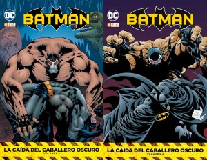 Los dos primeros volumen de La caída del Caballero Oscuro incluyen los cuatro números de Sword of Azrael, el especial Vengeance of Bane, los números 491 a 500 de Batman, 659 a 668 de Detective Comics, 16 a 20 de Shadow of the Bat y 7 y 8 de Showcase 93, publicados originalmente por DC Comics entre agosto de 1992 y octubre de 1993. El contenido extra lo forman las portadas originales de Joe Quesada, Glenn Fabry, Kelley Jones, Sam Kieth, Bill Sienkiewicz, Brian Stelfreeze, e introducciones de Felip Tobar y Jorge García.