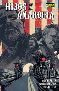 Cuando se está tan cómodo en un sitio, es difícil imaginar que pueda haber un final. Sons of Anarchy, la serie de televisión, echó el cierre después de siete temporadas y 92 episodios. El cómic, ya traducido como Hijos de la Anarquía, cogió el relevo con vigor, fidelidad a la propuesta original y muchas ganas de contarnos buenas y nuevas historias. Pero en el sexto volumen, con 25 números americanos y dos años de lectura, la carretera también llega a su final. Nunca se puede estar seguro de que esto sea un adiós definitivo, y cuando la despedida se produce sin que haya un agotamiento real el sueño de que volvamos a vernos en el camino es más factible. Dejémoslo en que este es un punto y aparte, que siempre es, además, una manera más romántica de verlo. Es un punto y aparte notable, que ahonda en las raíces de lo que hace de Hijos de la Anarquía una franquicia atractiva en cualquiera de sus manifestaciones, los lazos familiares y las conexiones delictivas. El grupo en sí mismo, con sus problemas y sus historias personales, y el IRA, el grupo terrorista irlandés, todo mezclado en una historia que tiene dos escenarios muy bien llevados de manera paralela por Ryan Ferrier y que Matías Bergara dibuja con firmeza y sabiendo aceptar el mimetismo hacia los personajes televisivos pero sin verse atrapado por esa exigencia.