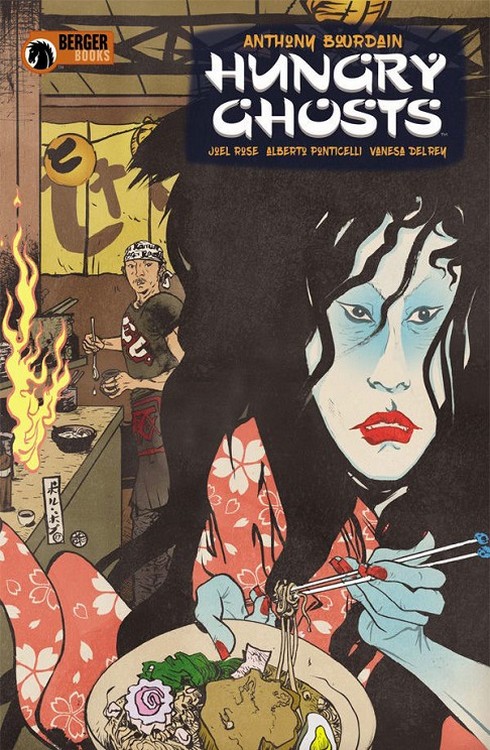 Fantasmas y comida, esa es la sugerente mezcla que nos ofrecen los escritores Anthony Bourdain y Joel Rose en Hungry Ghosts, un tebeo que es un clarisimo homenaje a los relatos de terror anteriores al Comics Code Authority y con un toque que nos recuerda también a antologías de género de origen japonés, ya que el manga se suele asomar al horror con muchos menos prejuicios que el cómic norteamericano. Aquí hay pocos limites, en cuanto a las historias y también en lo que se refiere a lo visual, y eso es una buena noticia para los amantes de este tipo de libros. Esto, por decirlo de una manera directa, es droga dura. Olvidemos las sutilezas y los juegos de sombras. Hungry Ghost es contundente y salvaje. Y se agradece por su sinceridad. Por esa misma razón, lógicamente, no es un tebeo para todos los públicos, pero el target evidente lo va a disfrutar. Su carácter de antología excluye la reiteración y contar con diferentes dibujantes para cada segmento hace que la variedad se apodere del coctel de una manera tan sencilla como lógica. Lo único que podemos decir es que no os aconsejamos que os pongáis a comer durante la degustación de este plato que cocinan Bourdain y Rose, porque se os puede indigestar el experimento. Cuando lo acabéis os podéis lanzar a las recetas que acompañan este viaje, pero no sería buena idea hacerlo antes.