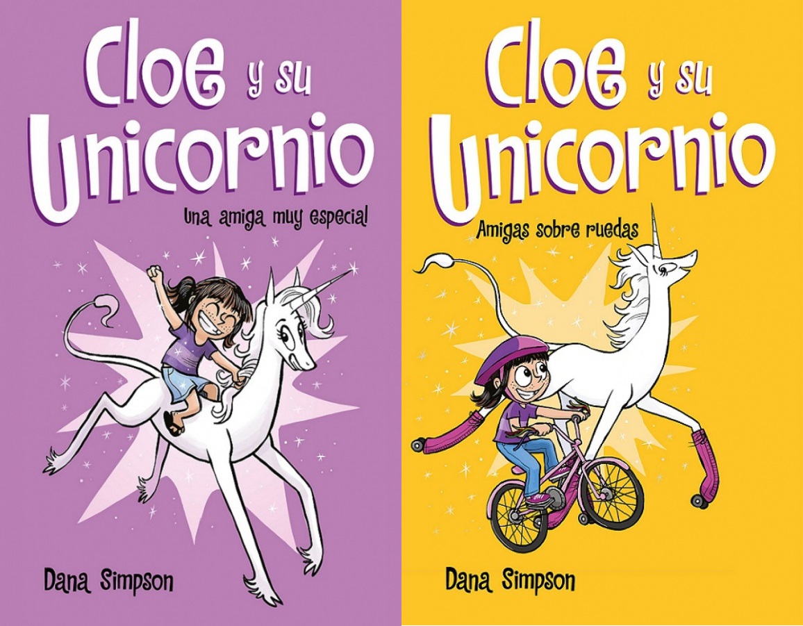 Es un error pensar que el cómic infantil exige menos esfuerzo o talento que el cómic, digamos, adulto, y da gusto ver que continuamente llegan títulos que nos lo demuestra. Sucede con Cloe y su unicornio, dos primeros volúmenes en los que Dana Simpson nos cuenta algo en teoría tan directo, sencillo y claro como la amistad entre una niña y una unicornia. Sencillo, claro. Lo divertido llega cuando comprobamos que lo que nos cuenta en realidad este cómic es la fascinante contraposición entre dos mundos diametralmente opuestos que, como por arte de magia, se complementan a la perfección. La unicornio, que tiene el sorprendente nombre de Caléndula Nariz Celestial, es una criatura embelesada con su propia imagen. Cloe, Phoebe en el original, es una niña solitaria, sin amigas y con evidentes problemas de adaptación. Sin caer en dramatismos exagerados o innecesarios, volvamos a que esto es un cómic para niños, la exposición de temas que va haciendo Dana Simpsomn es muy interesante, porque nunca pierde de vista que estas páginas tienen que ser divertidas pero a la vez nos va soltando píldoras deliciosamente adultas. Es una lectura sencilla, desde luego, pero que tiene muchas más cosas en su interior, también atisbos de un cinismo divertido o el retrato de una familia moderna bastante sorprendente.