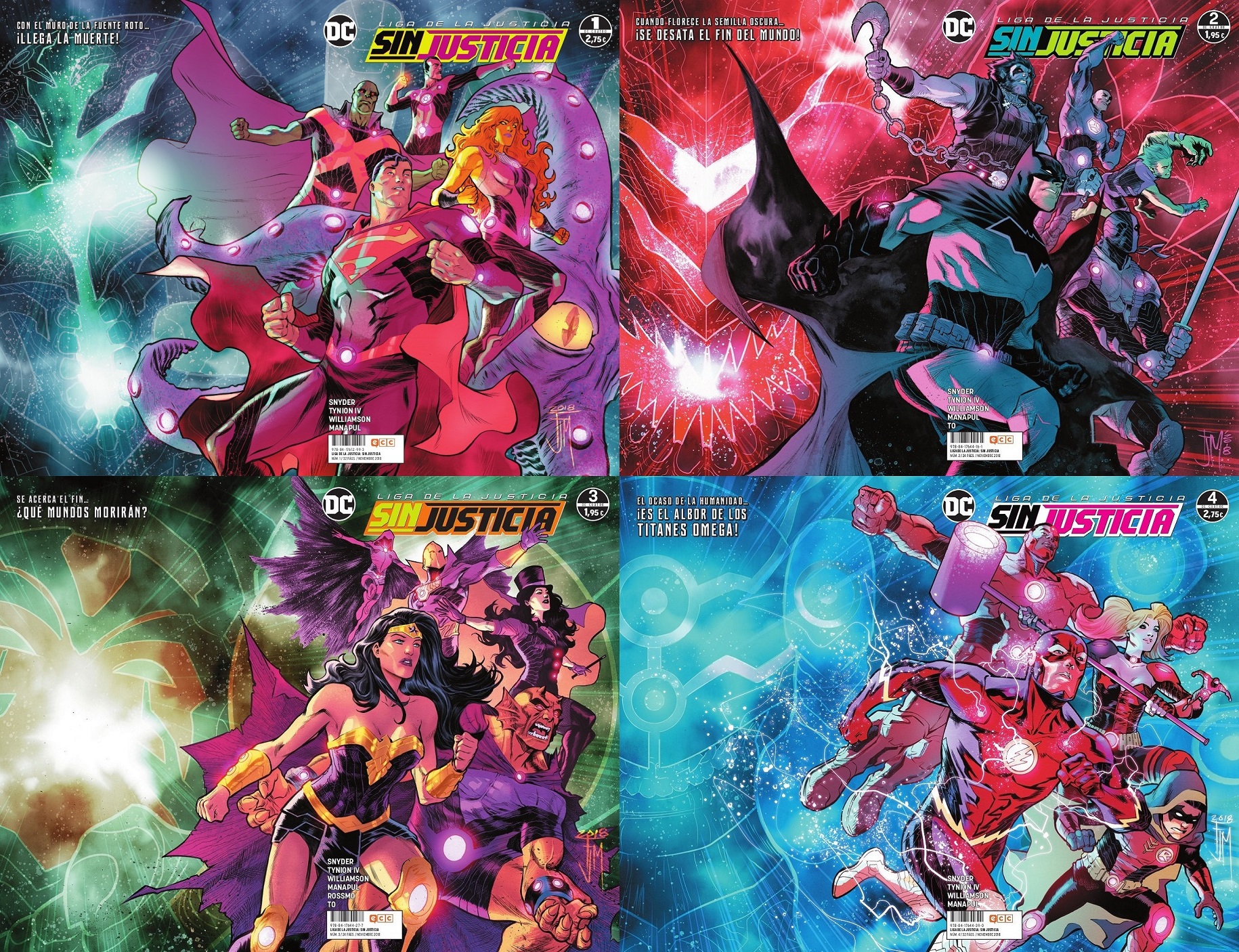 Eso, no obstante, hay que confinarlo a la esfera del lector avezado, el que lleva ya unos cuantos reinicio a sus espaldas y ya empieza a sentir cierta confusión a la hora de identificar el momento en el que se desarrolla la historia para el Superman, el Robin o el Green Lantern de turno. Si eliminamos eso, Sin justicia funciona bien. Es lógico que lo haga, porque sus autores tienen un oficio considerable y un ya sobresaliente conocimiento de los personajes. Casi ninguno de ellos tendrá un avance psicológico o personal notable, de hecho eso es algo que no se tiene demasiado en cuenta en este relato, pero tenemos la oportunidad de ver el despliegue en combate de todos ellos, representantes elegidos casi como si esto fuera una suerte de Secret Wars manejada por Brainiac y que funciona mejor como evento galáctico que en sus ramificaciones terrestres, aunque sea precisamente aquí donde se están forjando escenarios más fácilmente utilizables en el futuro para casi todos los héroes y villanos que toman parte en Sin justicia. Al final, lo que Snyder, Tynion y Williamson nos ofrecen es una loa al superhéroe DC, una que deje a todos en buen lugar, que tenga una historia sencilla y coherente de fondo y que sea más una invitación al futuro para nuevos lectores que un tributo a quienes llevan años disfrutando con estos personajes.