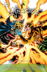 Con el interesante paréntesis de Andy Clarke en la historia criminal de Guggenheim y con algún añadido más, el dibujante que lleva la voz cantante en este volumen es claramente Patrick Gleason. Su estilo exagerado es el que marca con más claridad el aspecto de Sub Diego. Tiene algunos personajes que no terminan de cuadrar, y su Superman es sin duda uno de ellos, pero en general sabe sacar bastante partido de lo que le lanzan los guionistas. Su Aquaman tiene carisma y su puesta en escena compensa las rarezas que se derivan de la anatomía de sus personajes. Quizá su punto fuerte haya que buscarlo en la historia titulada Retroverso, donde se lanza a mostrarnos una versión alternativa de los personajes particularmente llamativa. A Aquaman quizá le pega más un dibujo algo más clásico de lo que vemos en estas páginas, pero es bastante adecuado para lo que supone Sub Diego dentro del devenir del personaje. Todos los superhéroes tienen escenarios que estaban pensados para marcar un antes y un después en su historia pero que al final terminan por no tener tanta importancia como cabía presuponerles. Sub Diego encaja en esa percepción para Aquaman, lo que hace que estos dos volúmenes (aquí, reseña del primero) se conviertan en una lectura necesaria para los aficionados del personaje pero sabiendo que tiene más límites de los que parece.