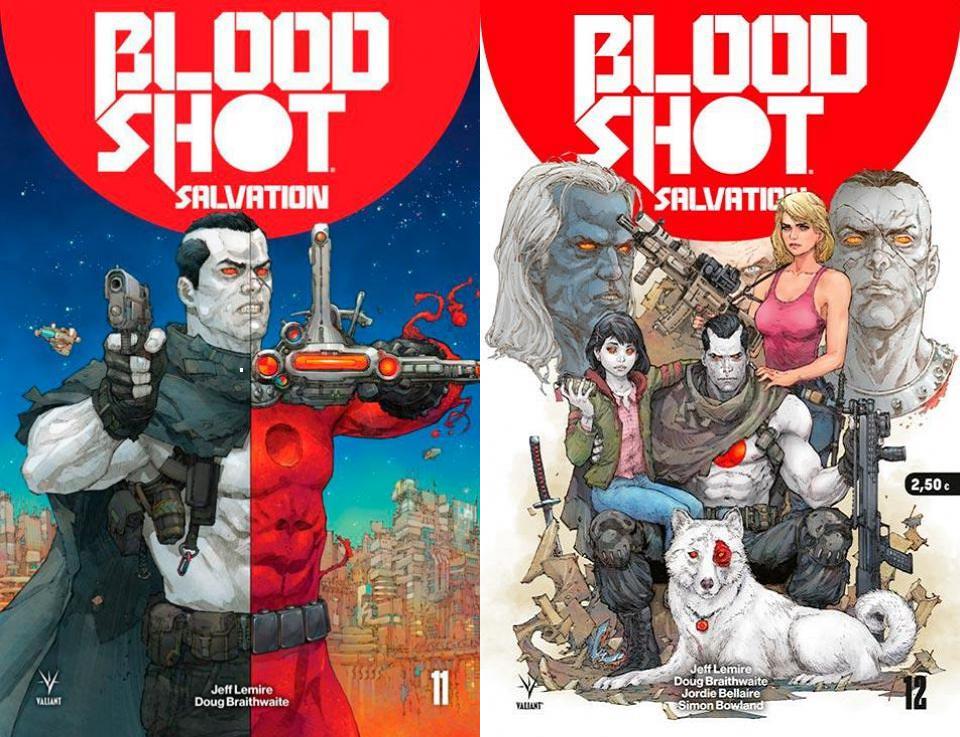 Doug Braithwaite es el dibujante que cierra Salvation, y lo hace con su clásica espectacularidad, con su notable puesta en escena y aprovechando todas las características visuales del universo Bloodshot. Ahí es vital que cada personaje indexado con nanitos, y al final hay unos cuantos, tenga su propia personalidad, y ahí no falla en lo más mínimo, ni siquiera en el escenario del futuro que se nos plantea en la portada del número 11, el penúltimo de la serie. A Braithwaite le ha tocado poner el punto final a una serie en la que se han ido turnando varios dibujantes y en la que han quedado muy pocas dudas a nivel visual, y ese final está a la altura. Qué buen retrato de los personajes el del ilustrador para mostrar el aura amenazadora que tienen que tener, pero para que también destaquen las emociones interiores. Eso es algo que resulta fundamental en este punto del camino de Bloodshot, cuando además de lo que siempre ha sido es ahora también un padre de familia. Bloodshot Salvation ha sido todo un viaje, y casi parece mentira que solo haya durado un año, estos doce números que ahora acaban con ese formidable final casi propio de la serie B de toda la vida. No sabemos qué vendrá ahora, pero si algo ha conseguido Lemire es que estemos dispuestos a dar ese salto a ciegas con toda la confianza del mundo.