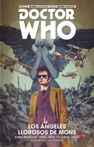 Hay que reconocer a las aventuras del décimo Doctor que estamos viendo en cómic que están convirtiéndose en un notable complemento de la serie para la pequeña pantalla. Cuatro doctores (aquí, su reseña) fue la explosión definitiva del personaje en esta revisión de las viñetas y Los ángeles llorosos de Mons un más que apreciable añadido a su mitología. Robbie Morrison, con dibujo de Daniel Indro, firma un espléndido relato de fantasía oscura que, además de llevarnos a la Primera Guerra Mundial, podría verse como un espléndido guion cinematográfico, de esos que lo ponen absolutamente todo porque no saben si va a tener continuidad y sin preocuparse por las consecuencias de cada una de las tramas que hay, porque solo importa el presente. Con Doctor Who no hay que tener ese miedo, porque sus aventuras son infinitas, o al menos lo parecen, pero es algo loable que un escritor no se deje nada, incluso aunque eso le haga caer en ciertos tópicos de los relatos de viajes en el tiempo y esos enamoramientos imposibles entre personajes de distintas épocas que al final tendrán que decidir si renuncian a sus vidas en su tiempo por esa razón tan poderosa. Quitando eso, hay mucho ingenio y ritmo en Los ángeles llorosos de Mons y una ejecución visual bastante atractiva y fiel a lo que podemos esperar de Doctor Who.
