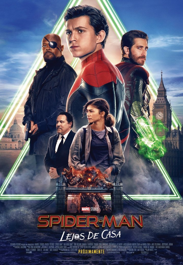 Reparto: Tom Holland, Jake Gyllenhaal, Samuel L. Jackson, Zendaya, Jon Favreu, Cobie Smulders, Marisa Tomei, J. B. Smoove, Jacob Batalon, Martin Starr.