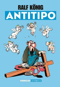 Primero llegó Prototipo, después Arquetipo y con Antitipo Ralf König cerró su particular trilogía para reinventar la Biblia con su más que ácido sentido del humor. En este tercer y hasta ahora último libro de esta travesía polémica (porque siempre lo será toda obra que quiera satirizar elementos religiosos tan enraizados en nuestra sociedad) se centra en el Nuevo Testamento y en San Pablo, al que conocemos antes de ser santo y después en su largo peregrinaje hasta Atenas para luchar contra el deseo carnal. Dado que König es famoso por sus historias de ambiente gay, por lo que no es difícil imaginar algunos de los terrenos que va a pisar el autor en esta sátira. Pero solo algunos, porque si hay algo de lo que puede presumir Antitipo es de su capacidad de sorpresa. Hay en estas páginas muchas pausas, con la famosa serpiente que tentó a Adán y Eva como protagonista, que podrían emparentarse con las que los hermanos Cohen utilizan en su cine, esos interludios que vienen a explicarnos de una manera diferente lo que estamos viendo y que añaden más y más elementos para que la risa se prolongue. Antitipo es un tebeo extraño, eso tampoco se puede negar, pero es tan divertido que sus rarezas se entienden como parte de la broma, como elementos necesarios para que König se quede muy a gusto tras contar lo que quería contarnos.