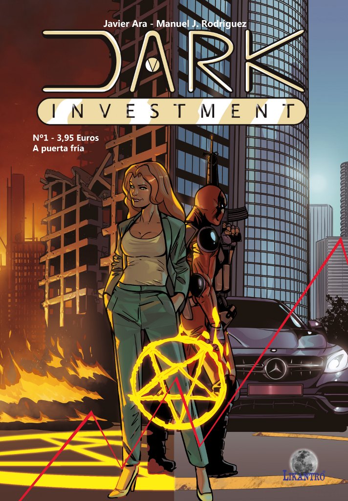 Llevar el mundo empresarial al mundo de las almas tiene su gracia. Hacerlo de la manera en la que lo ha hecho Javier Ara en Dark Investment tiene más gracia todavía. Lo que nos enseña en este primer número, uno desesperantemente corto para la enorme diversión que propone y anuncia, es imaginativo, inteligente y dinámico. Ara coge a una protagonista femenina que, coloquialmente, diríamos que los tiene bien puestos. Ella es quien lanza contraofertas a quienes deciden vender su alma al diablo, pero también quien se enfrenta a los demonios que quieren comprar esas almas con malas artes. Es una mujer de armas tomar y sexualmente muy liberada, y a la vez tiene un jefe al que tiene que rendir cuentas. Con esa presentación, Dark Investment es una fantasía oscura, pero también un tebeo de acción, y en este punto podría ser lo que Ara quisiera, ya que salimos de este primer número con la convicción de que, más que ponernos la miel en los labios, ha hecho que nos traguemos el panal entero. Para las pocas páginas que hemos disfrutado, hemos visto ya tantas ideas locas que el autor se ha ganado el derecho a seguir sorprendiéndonos con lo que quiera. Y si alguien duda, no hay más que ver la razón por la que el sujeto que vemos en estas páginas quiere vender su alma, y todo lo que eso conlleva, o el objeto en el que personaliza su invocación. Loco y divertido no, lo siguiente.