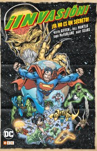 Invasión es un evento peculiar, al menos en su cuerpo central, que es lo que incluye este volumen. Es peculiar porque propone justo lo que dice el título, una invasión extraterrestre, y se centra en eso. No es la batalla superheroica que se intuye en la cubierta del libro, ni tampoco una tarea épica y espectacular que engrandezca la leyenda de Superman, Batman y Wonder Woman junto a sus compañeros de la Liga de la Justicia. De hecho, hay muy poco protagonismo real de los héroes clásicos, ausentes en el primer acto, colaboradores en el segundo y prácticamente víctimas en el tercero. La idea de Keith Giffen, desarrollada por Bill Mantlo, es mostrar el lado menos habitual de estos eventos. Para los detalles, quedaron las series de cada uno de los protagonistas. Por eso, estamos ante un tebeo diferente, que de hecho busca a un tipo de lector que no es el habitual. La apuesta es arriesgada, y más si la expectativa es la habitual, y eso quizá pueda pesar algo más en el primero de los tres números de la serie, porque obliga a procesar mucha información nueva, muchas razas alienígenas y muchos objetivos en los que los héroes no pintan demasiado. Y con una narración casi periodística, mensaje que se refuerza con el final de cada número, portadas del Daily Planet coronando los eventos de cada número.