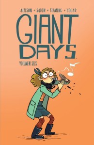 Sí decíamos que la clave de Giant Days está en la frescura, no podemos obviar el sensacional trabajo que hace Sarin en ese sentido. No importa cuántas veces hayamos visto a nuestras protagonistas mostrando las mismas emociones, siempre parece que es la primera. Da igual lo seria o lo alocada que se ponga cada situación, Sarin encuentra la manera de que sintamos lo que está sucediendo y lo que implica casi sin necesidad de leer los diálogos. Su caricatura es tan expresiva que casi se siente el movimiento de los actores, casi como si esto fuera el storyboard más perfecto posible de una serie de dibujos animados que por ahora no existe. Hasta lo más absurdo tiene un encaje de lo más natural y eso, se mire como se mire, es muy complicado de conseguir. Pero Giant Days no para de llegar a ese punto y de sorprender con cada número, con cada aventura, con los cambios que se van produciendo en la vida de nuestras chicas. Giant Days es un triunfo continuo, es una serie alocadamente divertida que sabe combar los límites de la realidad más cotidiana para que los hechos más rocambolescos tengan una equivalencia en nuestras vidas con la que nos podamos sentir identificados. Y sin embargo, así es. Larga vida a Giant Days, que no falla en su objetivo de darnos historias buenas y divertidas en cada cita.
