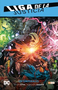 Hitch mira a la Liga de la Justicia siempre desde una perspectiva de admiración, y se nota incluso desde las presentaciones, sin necesidad de entrar de lleno en sus historias. No le dejan de interesar aspectos teóricamente más pequeños, y ahí está la conversación que tienen con Batman acerca de las medidas de prevención que el Caballero Oscuro tiene sobre todos y cada uno de sus compañeros de equipo, en un intento de retomar de una manera más o menos ligera la base de la espléndida Torre de Babel (aquí, su reseña), pero al final ese no es el interés de Hitch. El autor quiere enseñarnos a tipos de enormes poderes salvando el mundo, y eso es algo perfectamente respetable, porque además es lo que durante décadas fue en buena medida el cómic de superhéroes. Hoy es raro ver historias en las que la admiración por sus figuras y sus capacidades estén por encima del conflicto y las situaciones emocionalmente más complejas, y quizá eso juegue también algo en contra de Intemporales, pero no se puede negar que hay una muy buena idea de base, que además está conducida con oficio para saber aprovechar los momentos más espectaculares y que el final que ofrece es de lo más adecuado y supone una sabrosa puerta abierta para el futuro, algo que siempre es de agradecer en una serie como Liga de la Justicia.